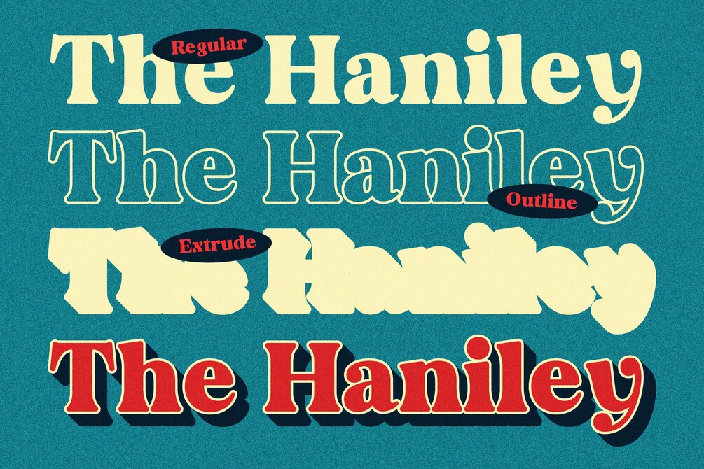 The Haniley is a serif font with retro feel. It's perfect for logotype, poster, branding and merchandise. This font adds a touch of uniqueness to your designs, making it great for creating standout design. Whether you’re working on a brand or a special project, The Haniley brings an elegant and timeless look to your work.